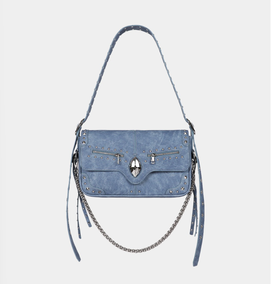 [w-bag23-018] Ellipse Symbol Cranky Flap Bag - Denim Blue