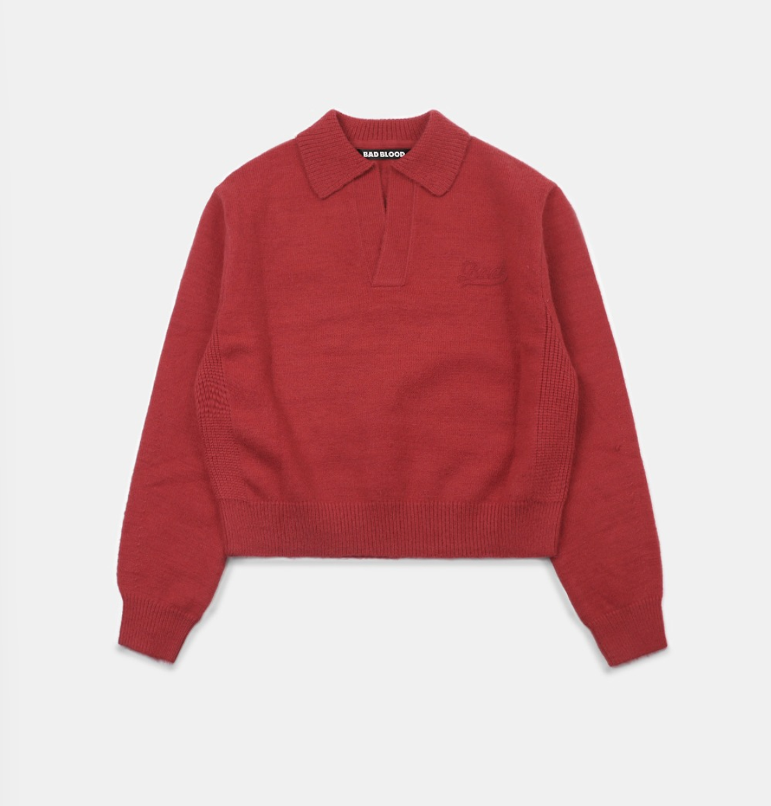 [w-knt24-024] BS Heavy Wool V-Neck Sweater - Red