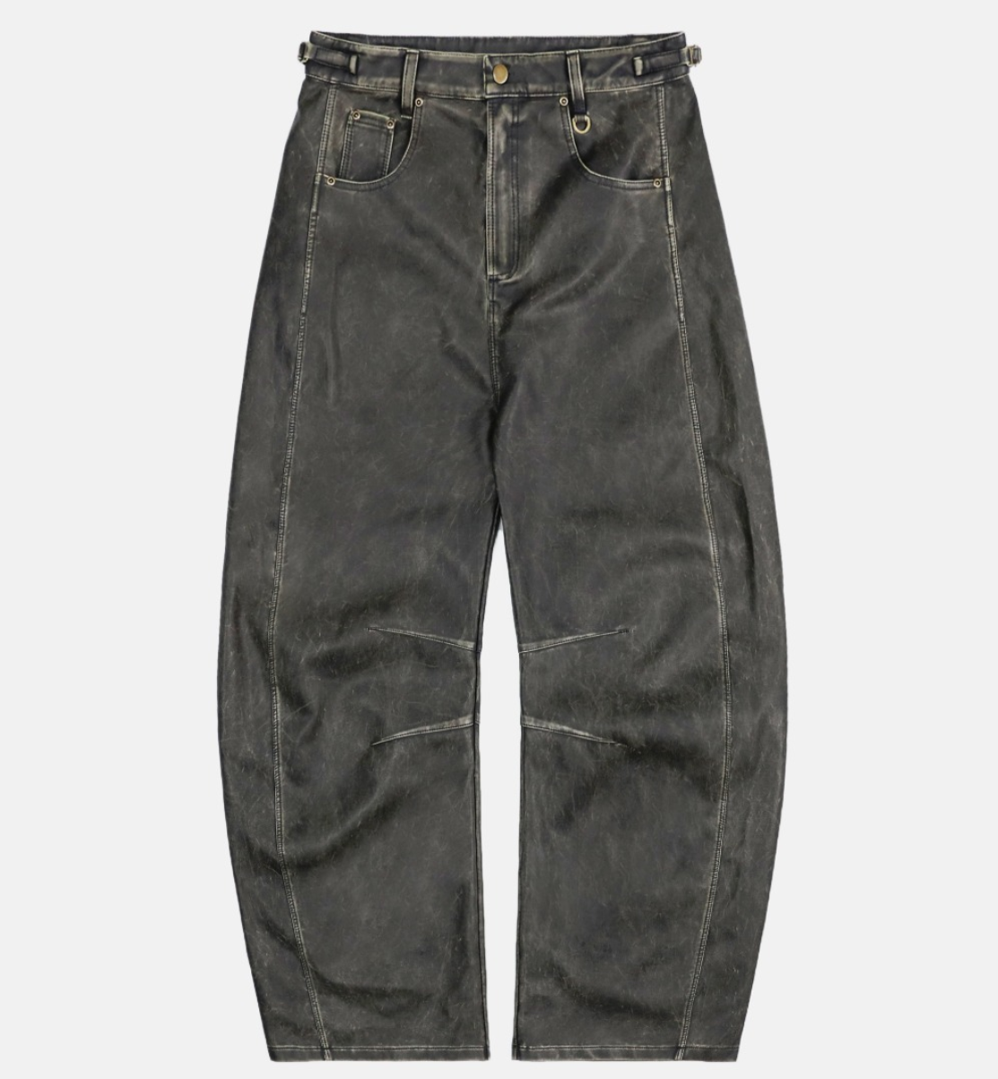 [w-pts24-087] Charlie Washed Leather Barrel Pants - Khaki Black