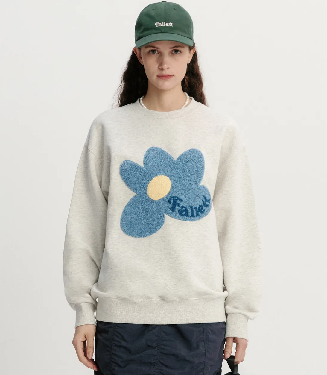 【韓國中秋特價】 Mucent [Yesria Pick] Boucle Flower Man-to-Man Oatmeal