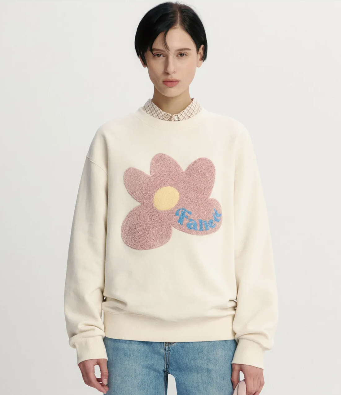 【韓國中秋特價】 Mucent Boucle Flower Man-to-Man Ivory