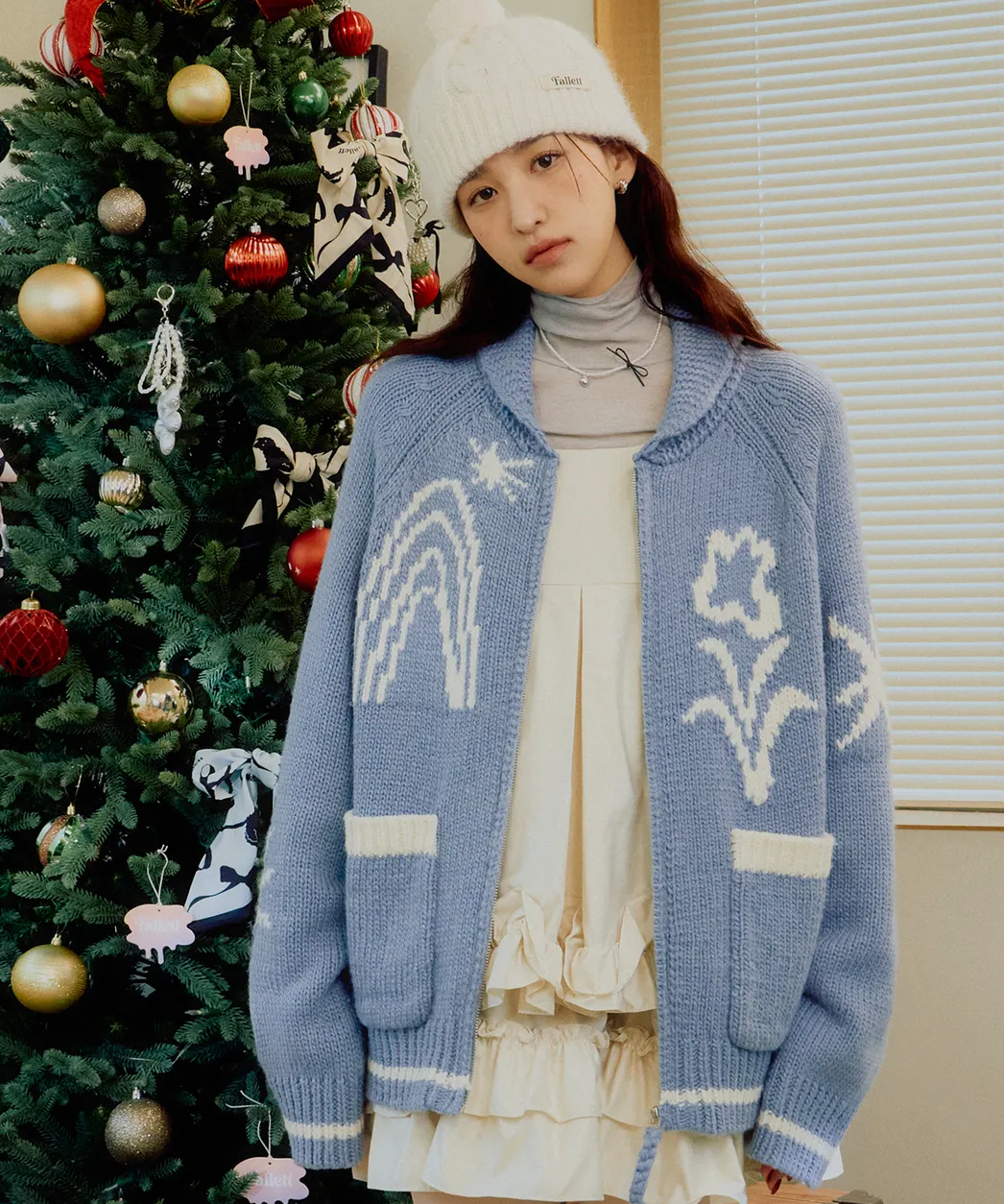 【韓國中秋特價】 Mucent Drawing Garden Cowichan Knit Zip-Up Sky Blue