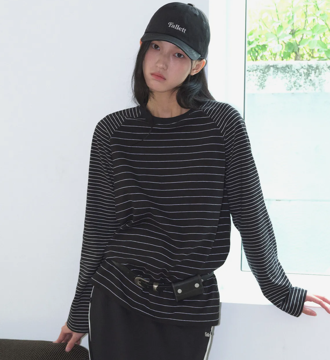 【韓國中秋特價】 Mucent Striped Logo Long Sleeve Black