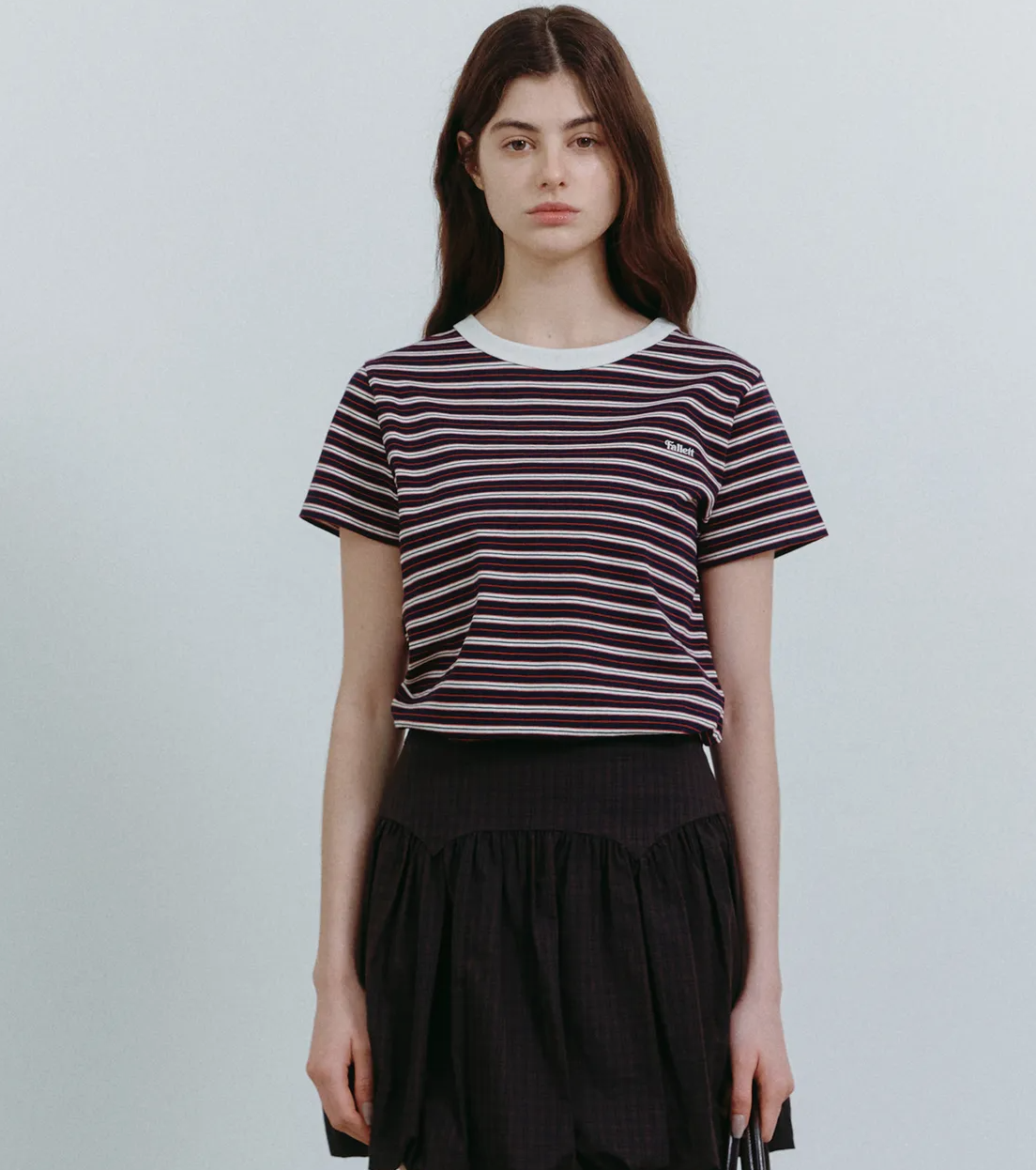 【韓國中秋特價】 Mucent Striped slim fit short sleeve t-shirt in navy