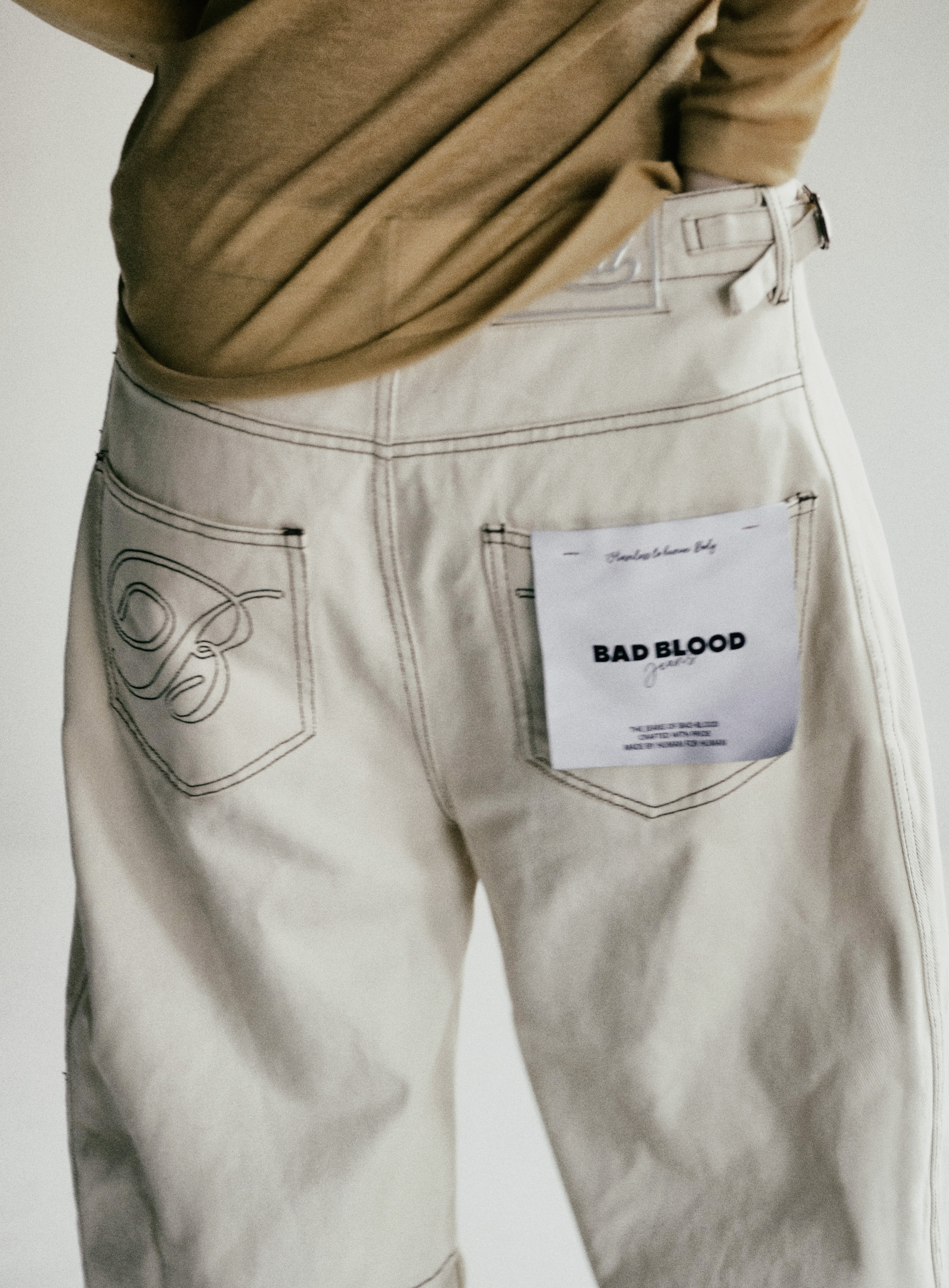 Badblood [W-PTS24-072] Noah Barrel Denim Jeans - Cream