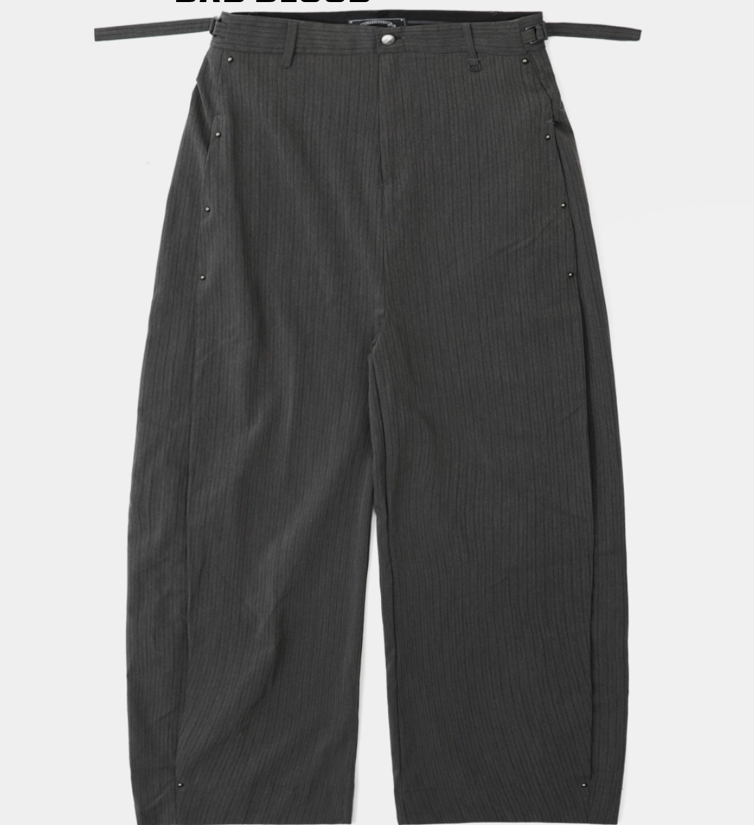 Badblood [w-pts25-040] 101 Studded Curved Slacks - Charcoal/Striped