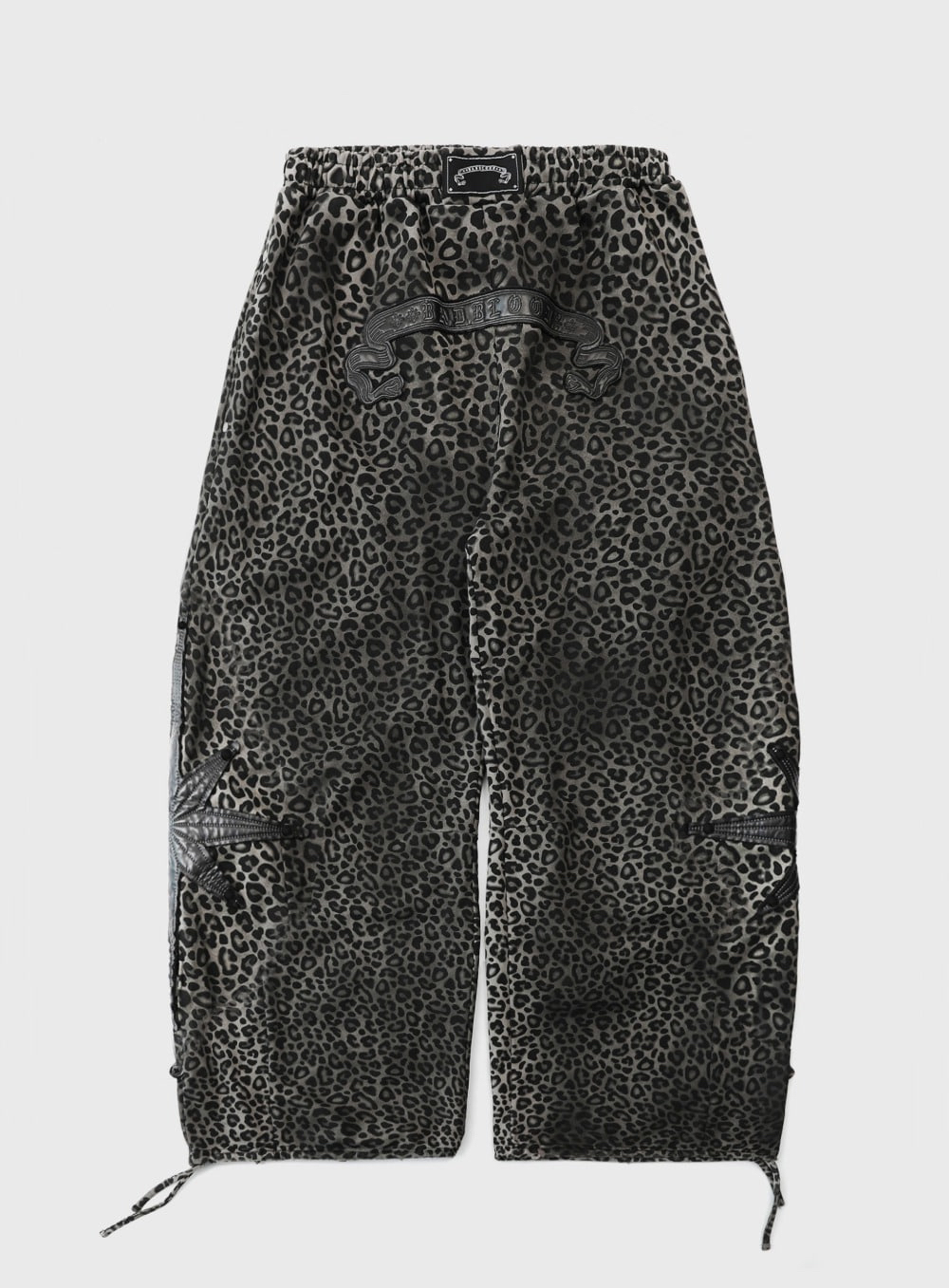 Badblood [w-pts25-056] Cosmo Patch 2-Way Curved Jogger Trousers - Black Leopard