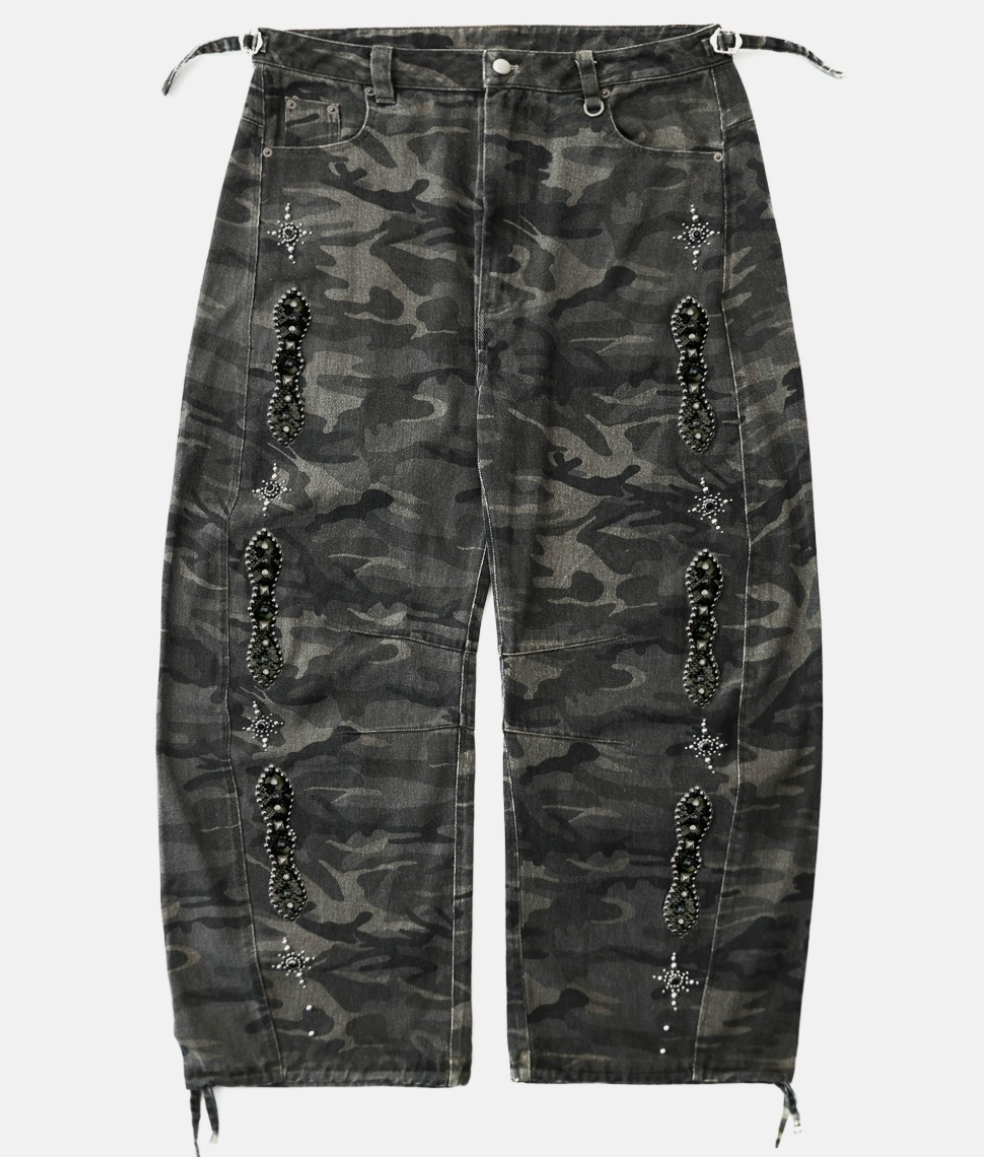 Badblood [w-pts25-078] Viper Gemstone Curved Pants - Green Camo