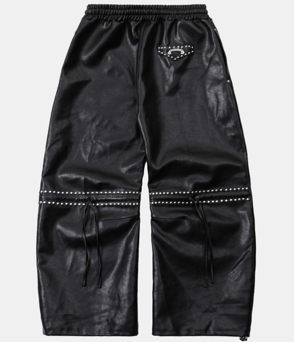 Badblood [w-pts25-087] Studded Leather Jogger Pants - Black
