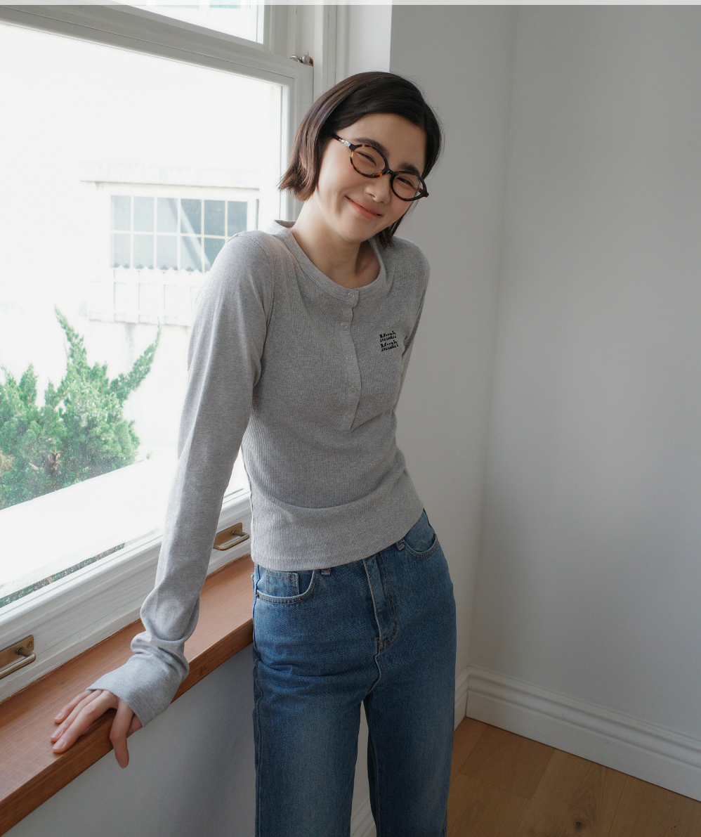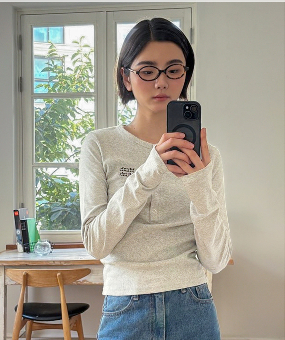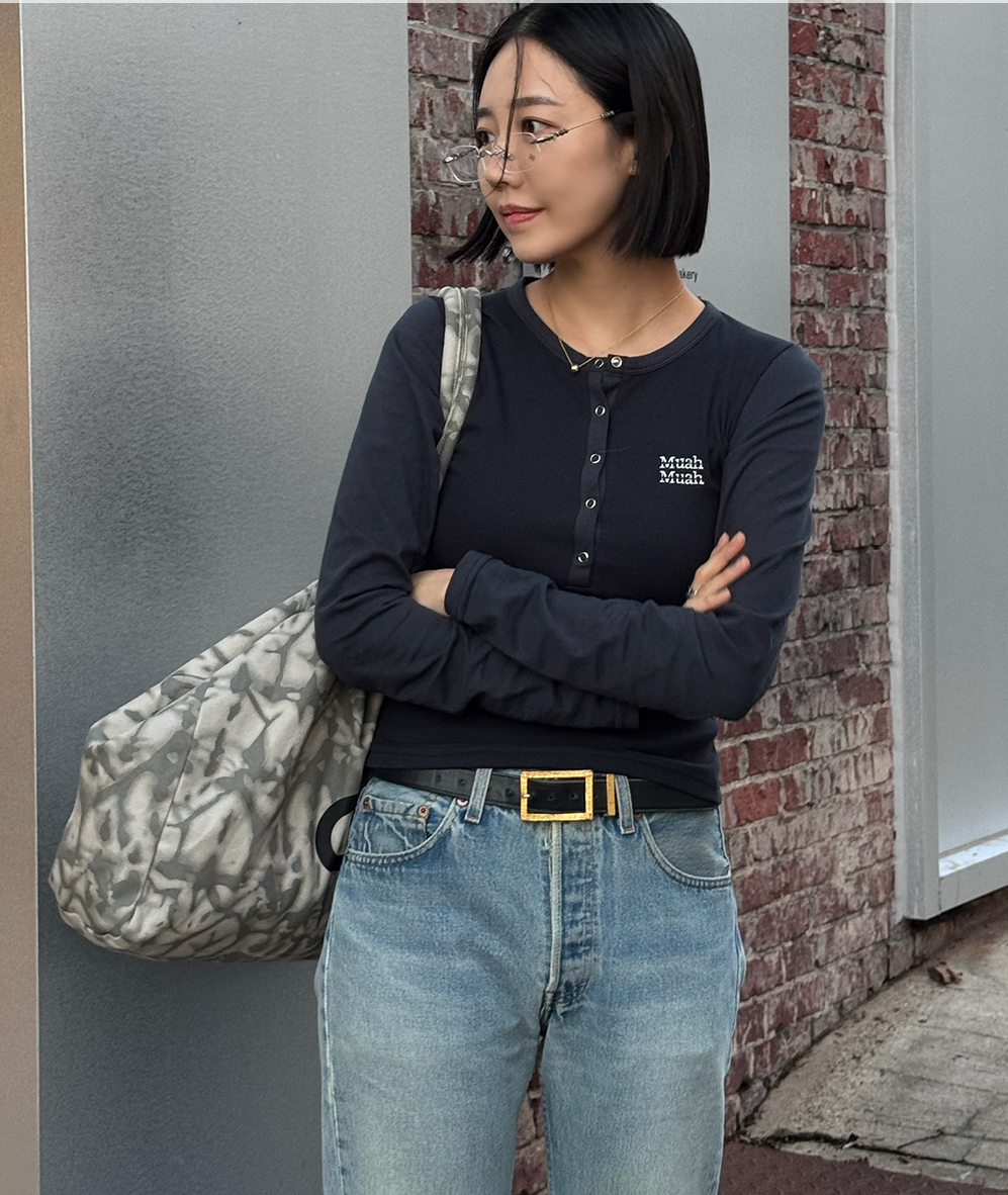 Muah Muah [Lv.5] Henley Neck Stitch Long Sleeve T-Shirt