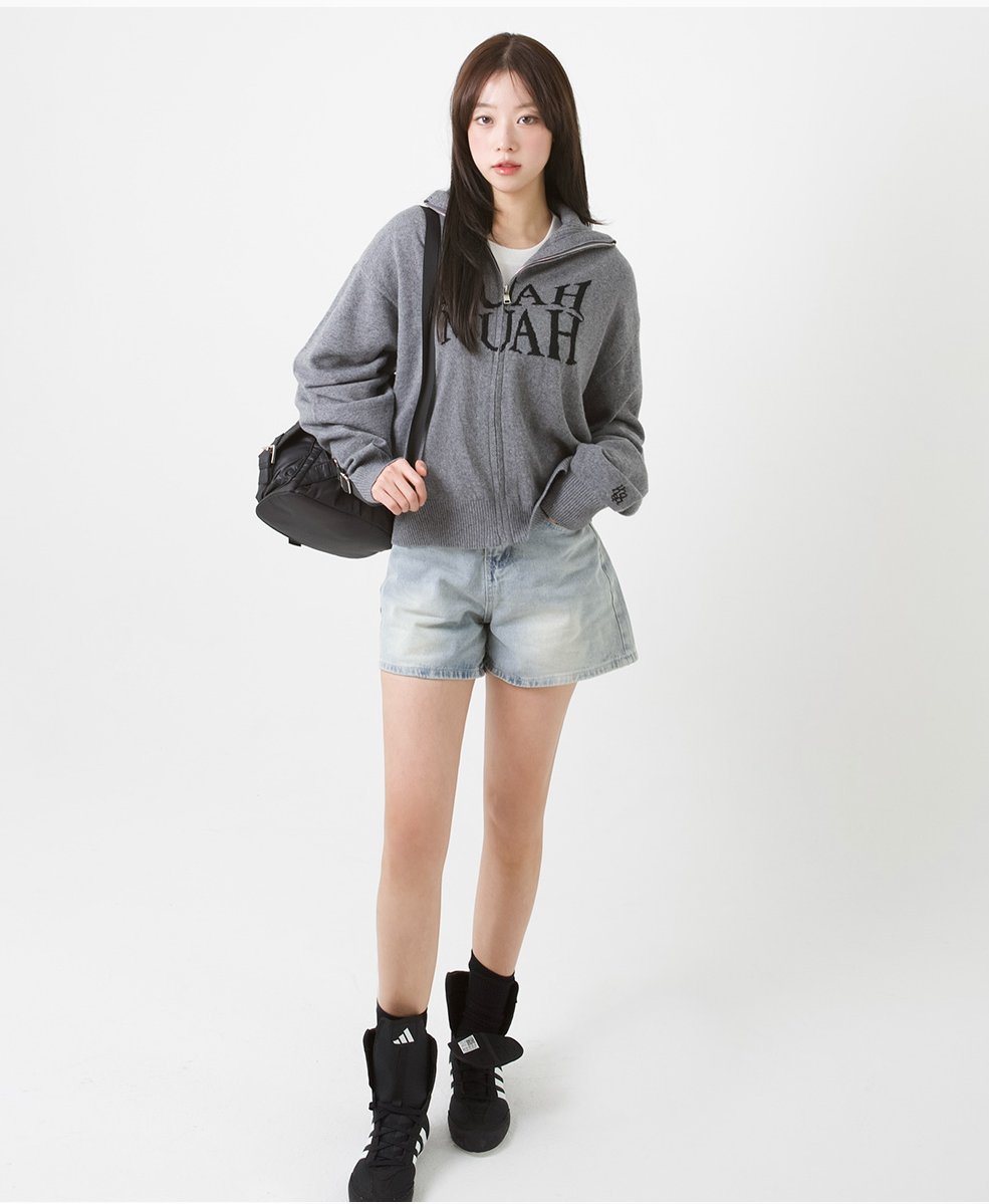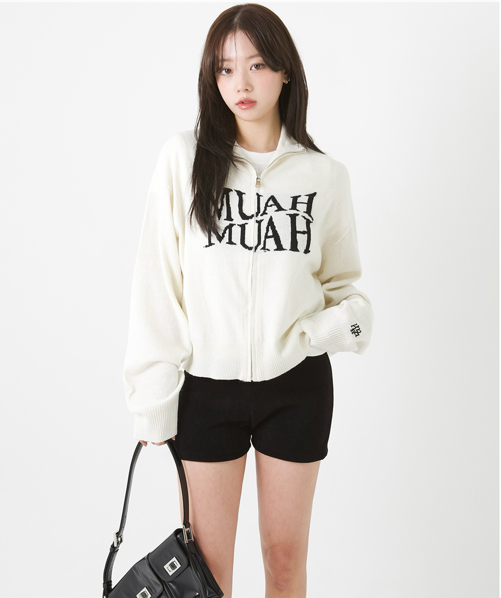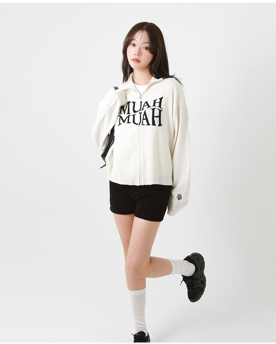 MuahMuah [Lv.5] Jacquard knit zip-up cardigan