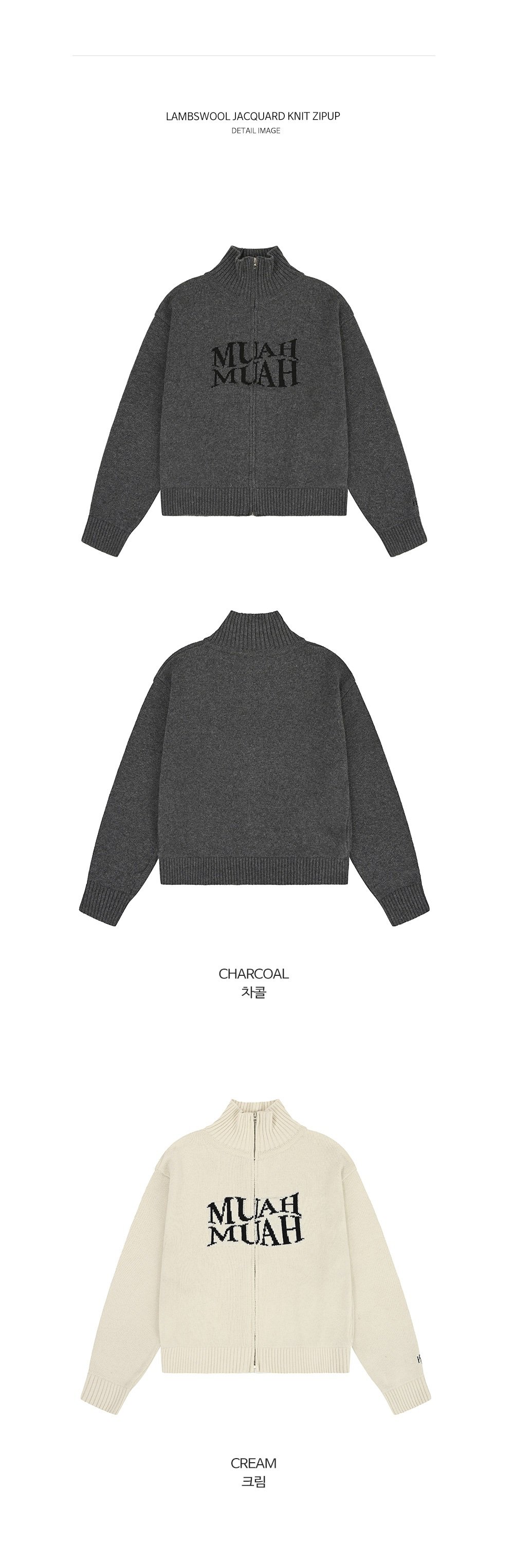 MuahMuah Lamb's Wool Jacquard Knit Zip-Up [Charcoal]