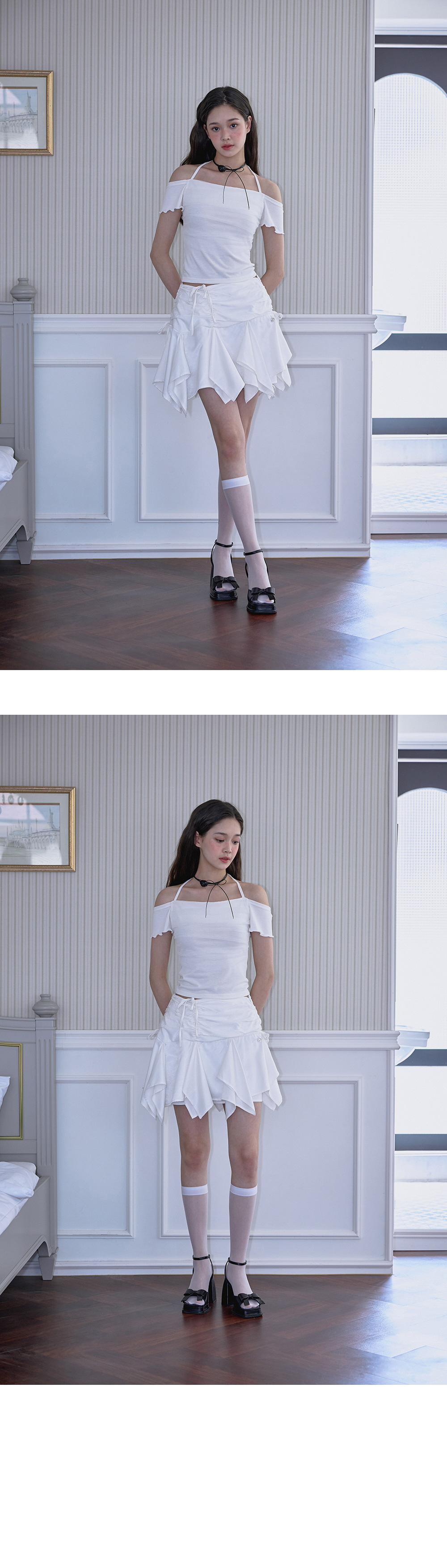 Rose Frantz Strap Shirring Mini Skirt [White]